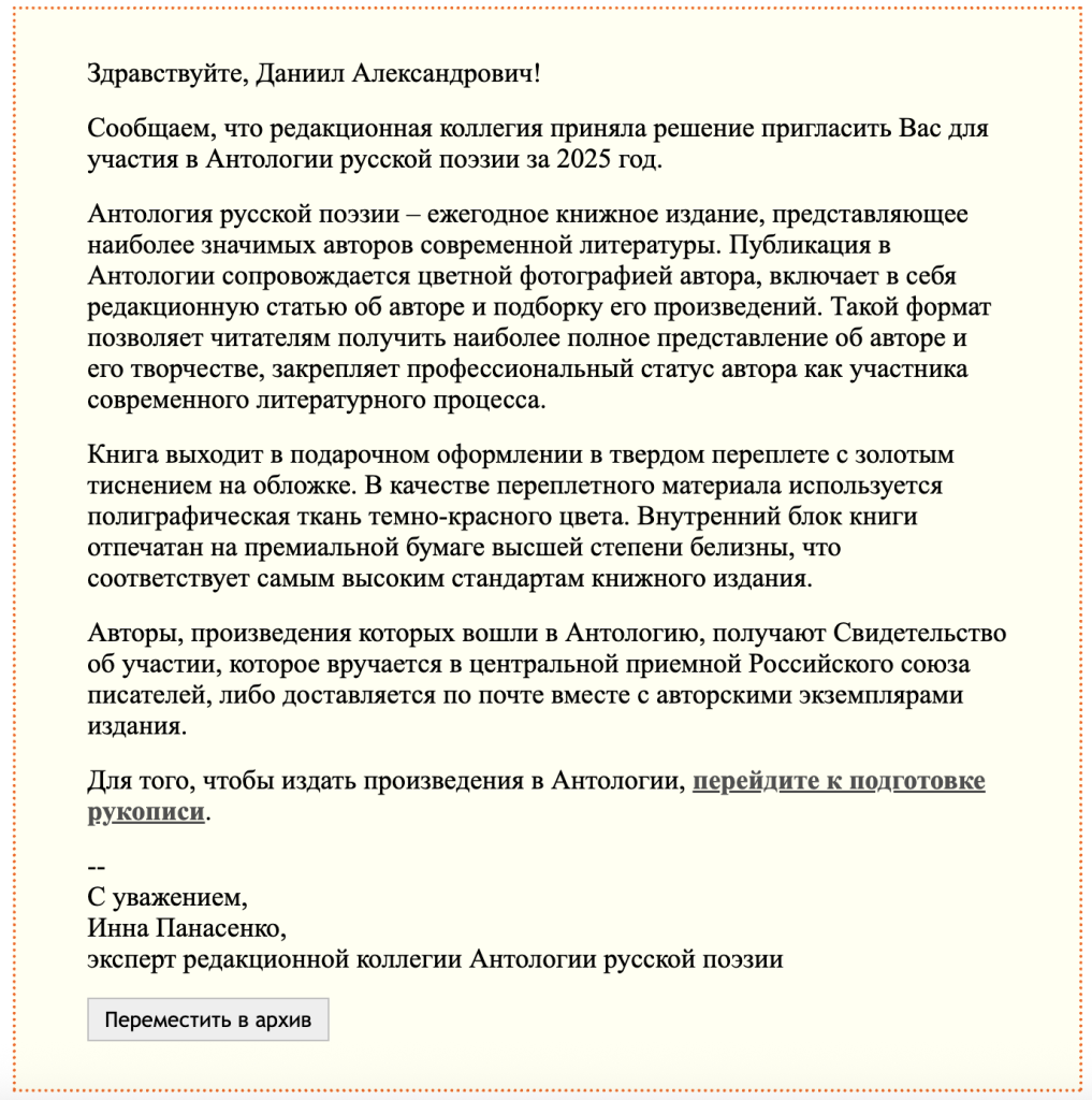 Позднее также был выбран для публикации в сборнике «Антология русской поэзии 2025»: